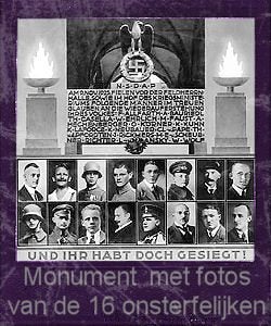 Maar in de 10 jaar tot Hitler de macht greep, werden de 16 martelaren. Ze droegen een swastikavlag met zich mee. Die viel en het bloed van de doden kwam erop. Toen ontstond het ritueel dat elke nieuwe nazivlag ingewijd werd doordat Hitler deze met die vlag aanraakte.