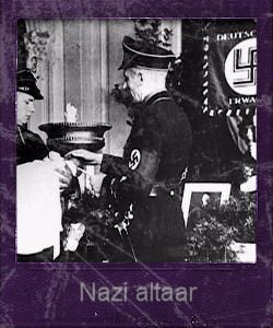 Duitslands heidense verleden en zijn eigen katholieke opvoeding waren elementen die Himmler zelfs in het SS-gezinsleven doorvoerde. Een is een foto van zo'n tableau in een nazi- of Hitlertempel voor het dopen van kinderen. Een SS-altaar met op de plek van de crucifix een foto van Hitler. Zo werd een kind gepresenteerd aan de gemeenschap van 'Germaanse strijders'.